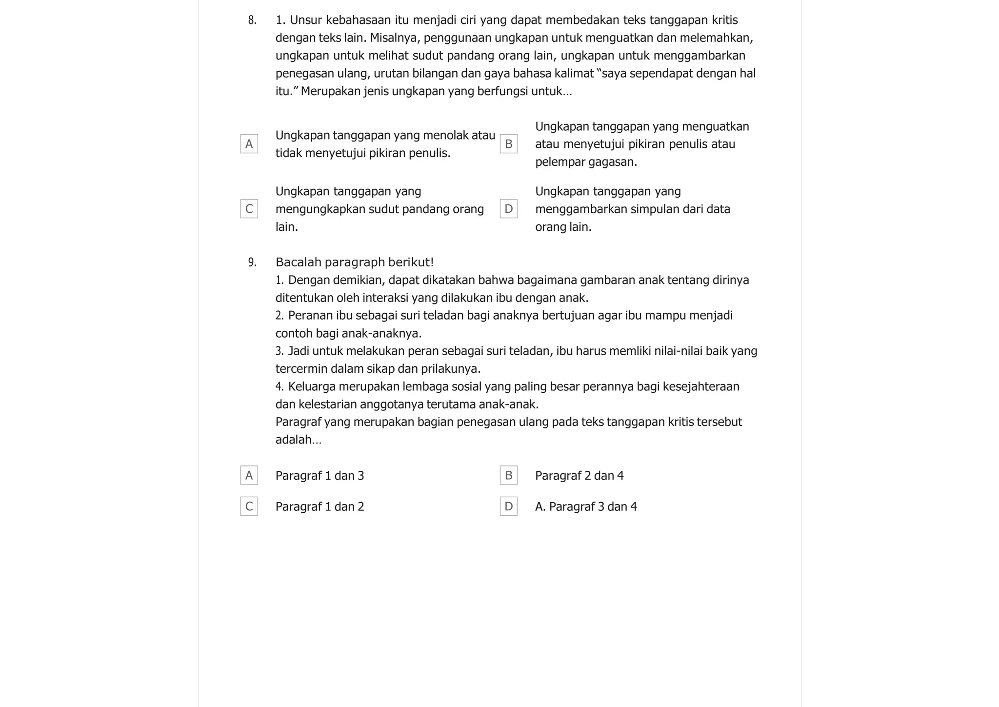 - Soal 9: Mengidentifikasi Fungsi Teks Tanggapan.
