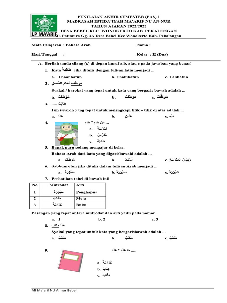 - "Bank soal Bahasa Arab kelas 2 PAS ganjil"